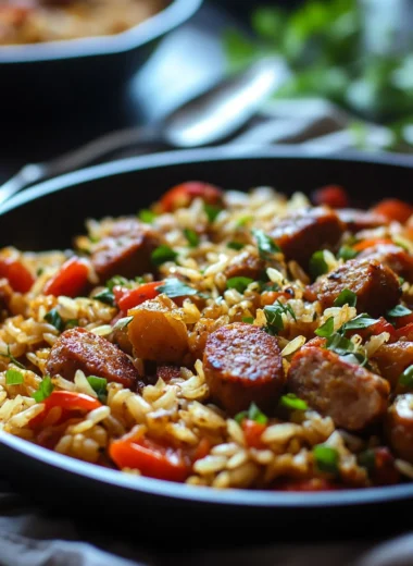 0 commentsCajun Sausage and Rice Skillet is an amazing one-pan dish that boasts vibrant flavors and filling ingredients. This comforting meal brings together spicy sausage, colorful vegetables, and fluffy rice in a simple yet satisfying way. Imagine the aroma of seasoned sausage sizzling while the rice absorbs all the savory juices. […]