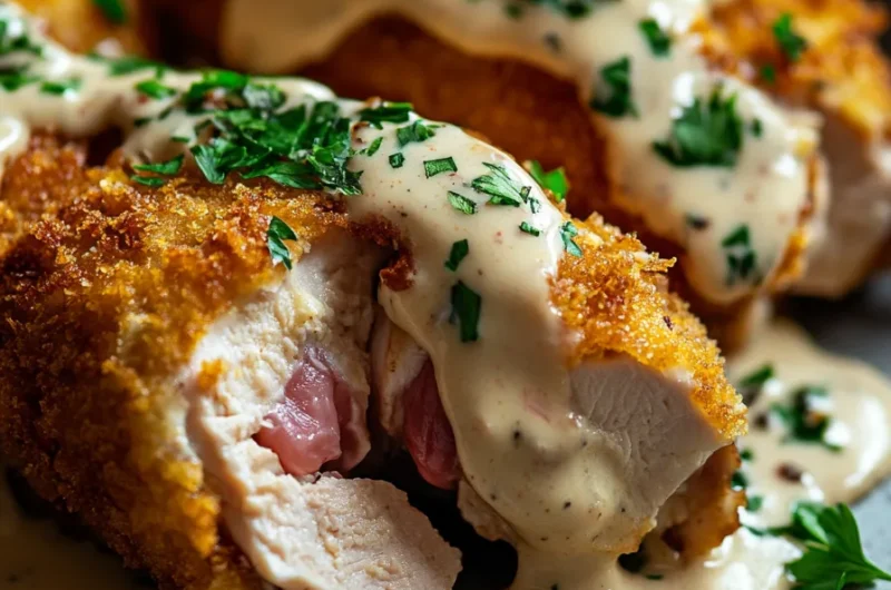 The beauty of this Crispy and Creamy Chicken Cordon Bleu lies in its balance of flavors. The crispy, golden-brown exterior provides a satisfying crunch, while the juicy chicken inside is paired with the savory notes of ham and a melty layer of cheese. To enhance this wonderful combination, the Dijon sauce adds a tangy kick that perfectly ties everything together. This dish is more than just a meal; it’s an experience that will delight your family and friends.