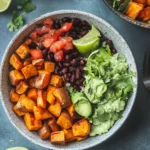 Layering is Key: When assembling your bowls, layer the ingredients to maximize flavor in every bite. Start with sweet potatoes, followed by beans, then vegetables, and top it off with garnishes.